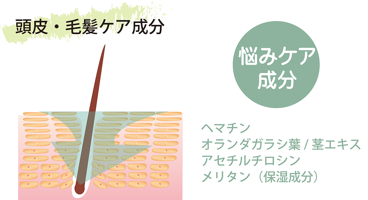 さらに頭皮の環境を整えることで、養毛・育毛効果の商品をケアを受け止めやすい環境を作ります。